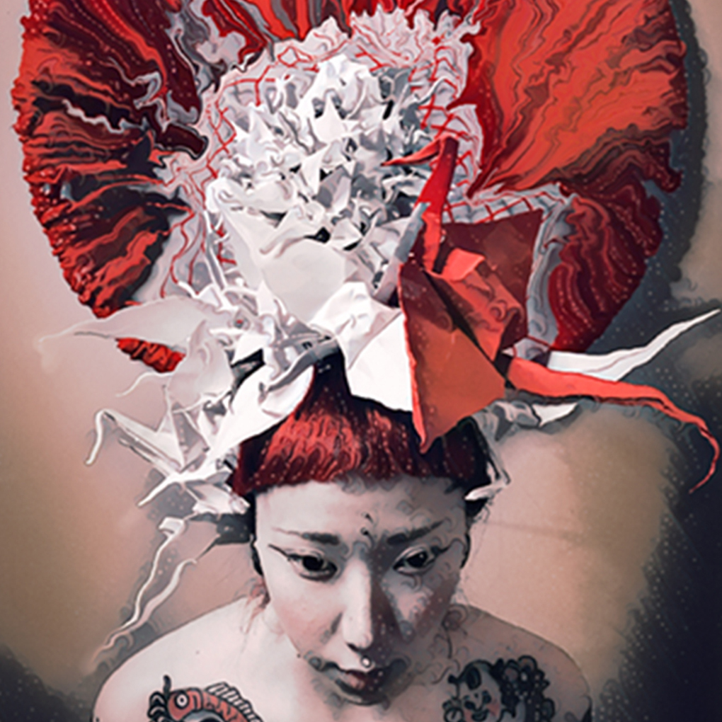 丸山葉純 ヘアメイク ネイルチップ ボディペイント / みお model / 川合旅人 photo