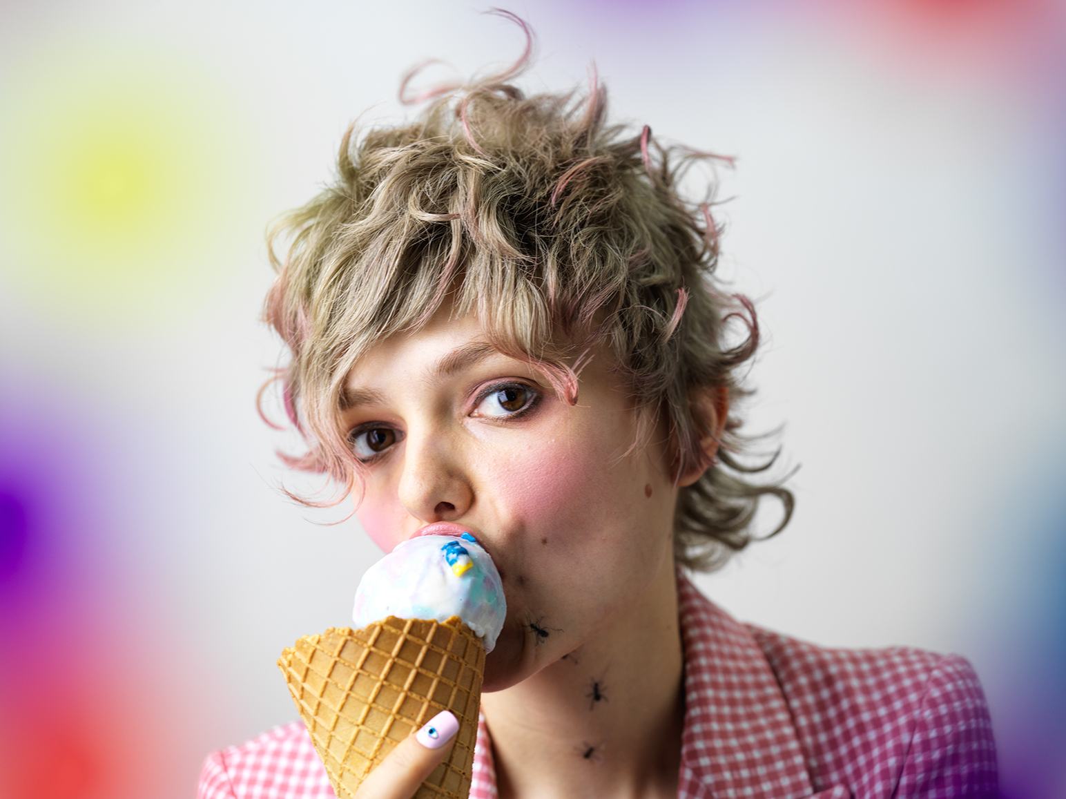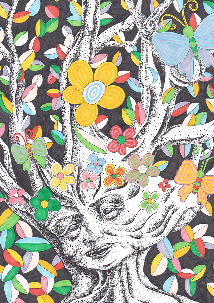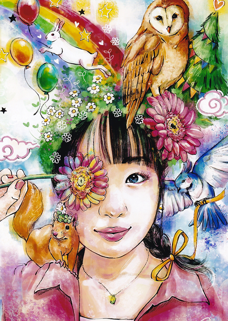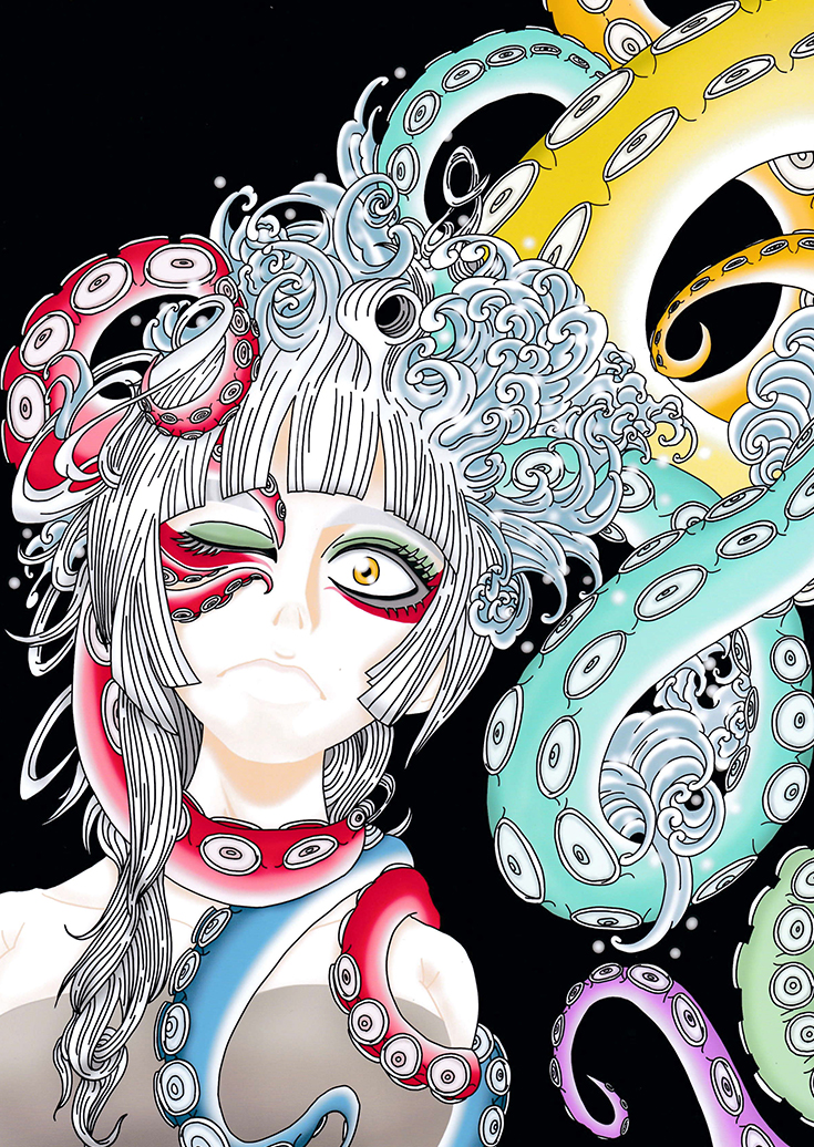 蛸の8本の足から末広がりを表現して、7色の足の色の吸盤で幸せを掴む。というイメージで今回のテーマである「PEACE PEACE PEACE」をデザインしました。